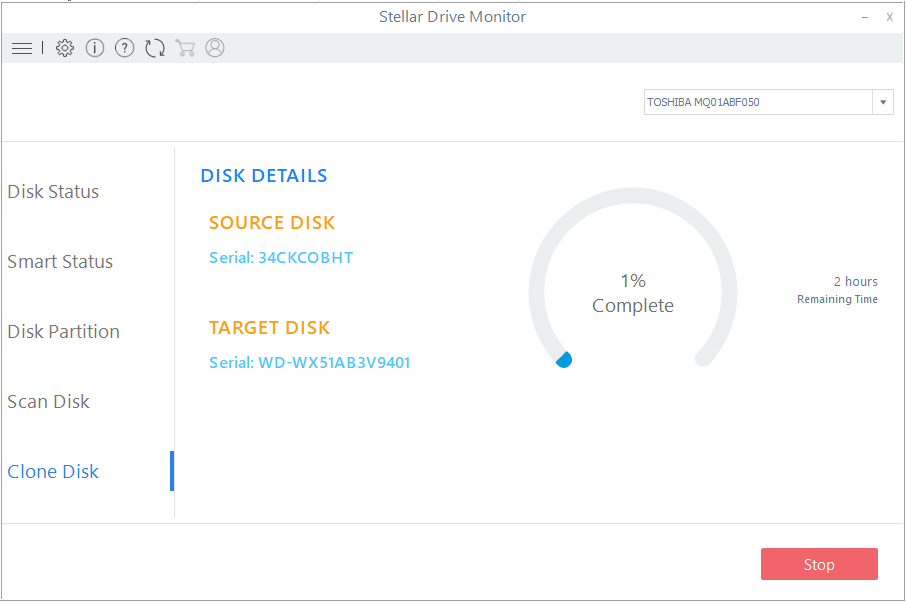 7. Disk Cloning will take a while depending on the disk type, volume size, and the interface that is used to connect both drives
