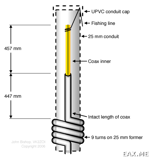 Схема подходящей антенны из кабеля RG58 была найдена в блогах австралийских радиолюбителей John, VK2ZOI и Andrew, VK1NAM: