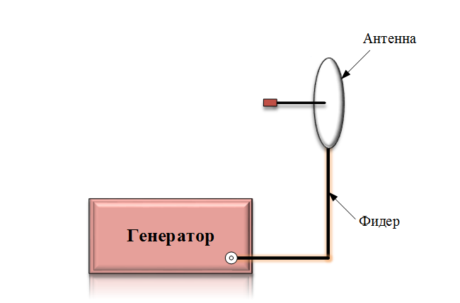 Таким образом, в систему излучения электромагнитного поля входят: генератор колебаний, фидер и излучатель. Конечно, сам фидер и генератор непосредственно в излучении не участвуют (или точнее – не должны участвовать, если они правильно сконструированы), рисунок 1.