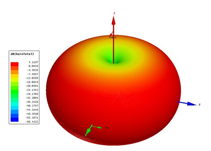 Очевидно, что в горизонтальной плоскости диаграмма направленности будет иметь форму шара. Для наглядности вы можете себе представить, что посмотрите на трехмерный вид рисунка 6 сверху (на плоскость Phi).