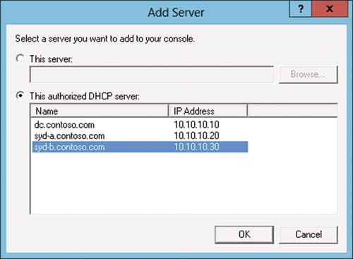 - На странице Specify the partner server to use for failover нажмите Add Server. На экране 3 в окне Add Server вы видите список всех компьютеров Server 2012, выполняющих служебную роль DHCP и авторизованных в домене. Выберите сервер DHCP, который хотите использовать в качестве сервера-партнера, и нажмите OK.