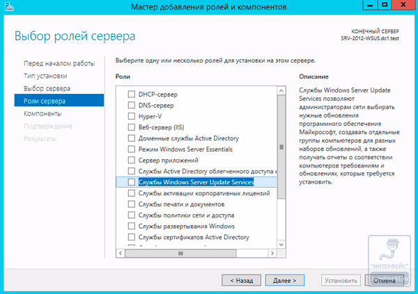 Важно! Существует ряд ограничений на установку служб ролей WSUS. Сервер БД WSUS не может быть контроллером домена, Сервер WSUS не может быть одновременно сервером терминалов Remote Desktop Services.