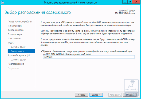 Следующим шагом укажите размещение хранилища обновлений, рекомендуем выделить для этих целей отдельный жесткий диск или раздел диска.