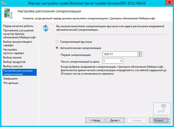 Не забудьте также задать расписание для синхронизации с вышестоящим сервером. На этом первоначальная настройка закончена.