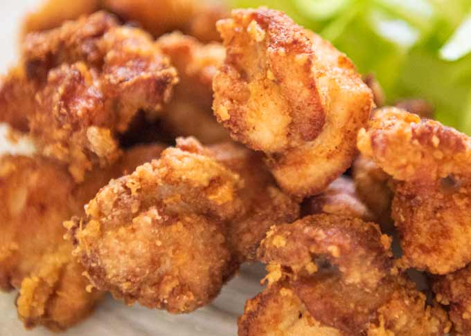The secret to great Karaage Chicken with crunchy outside and juicy inside is the double-frying.
