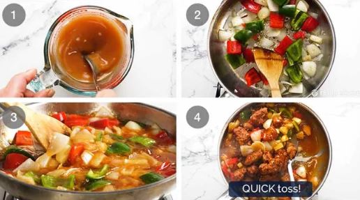 4. 10 second toss to coat pork in Sweet and Sour Sauce!