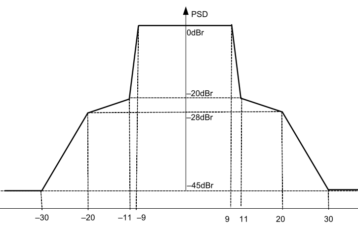 Всем известны «непересекающиеся» каналы 1/6/11. Так вот, они пересекаются! Потому, что Wi-Fi, как было упомянуто раньше, технология широкополосная и полностью сдержать сигнал в рамках канала невозможно. Приведенные ниже иллюстрации демонстрируют эффект для 802.11n OFDM (HT). На первой иллюстрации изображена спектральная маска 802.11n OFDM (HT) для 20МГц канала в 2.4ГГц (взята прямо из стандарта). По вертикали — мощность, по горизонтали — частота (смещение от центральной частоты канала). На второй иллюстрации я наложил спектральные маски каналов 1,6,11 с учетом соседства. Из этих иллюстраций мы сделаем два важных вывода.