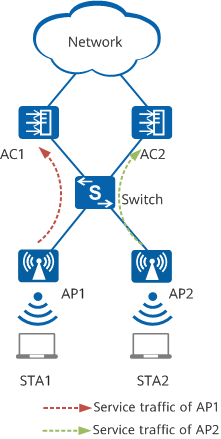 When the standby AC detects a failure of the active AC or the CAPWAP link between the active AC and APs, the standby AC automatically switches to the working state to take over services from the active AC, ensuring service continuity on STAs. |