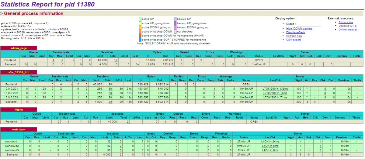 server owncloud3 10.0.0.203:80 maxconn 32 check8. Restart HAProxy to apply changes: