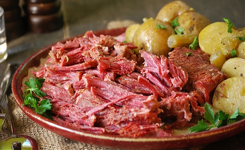 6. Доводим до кипения, уменьшаем огонь до самого маленького и варим под крышкой 2,5-3 часа, до мягкости говядины. Если хотите приготовить традиционное американо-ирладское блюдо «солонина с капустой,» то за полчаса до окончания варки положите в воду несколько очищенных картофелин, а за 15 минут — пару морковок и нарезанную крупными «дольками» капусту.
