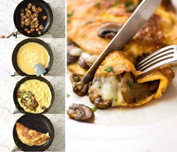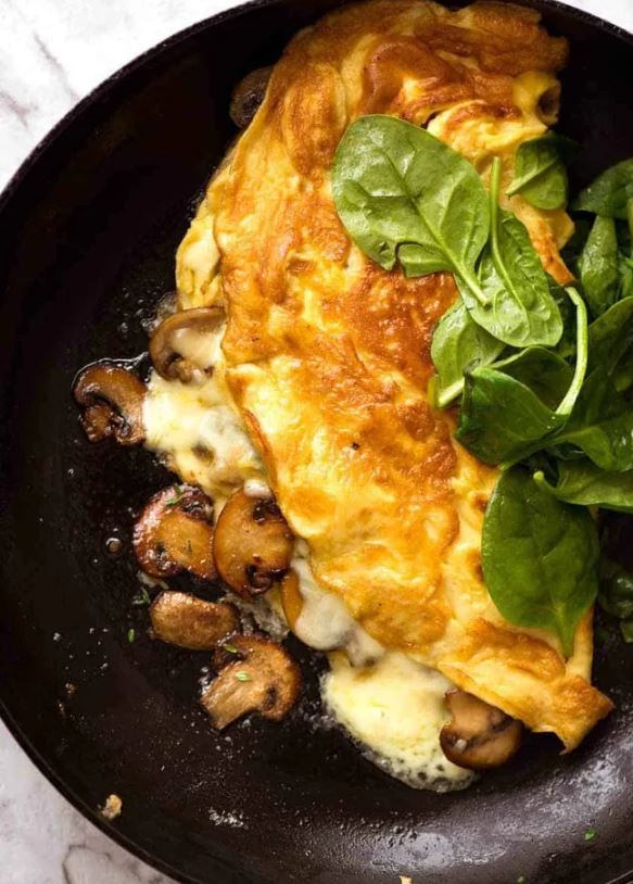 A fluffy, buttery Omelette is a recipe that everyone should know how to make! Once you know the basics, the filling options are limitless. This cheesy Omelette is stuffed with buttery garlic mushrooms. Try bacon or ham, asparagus or even salmon!